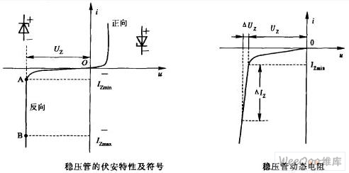 (5)額定功耗Pz 前已指出,工作電流越大,動(dòng)態(tài)電阻越小,穩(wěn)壓性能越好,但是最大工作電流受到額定功耗Pz的限制,超過(guò)P2將會(huì)使穩(wěn)壓管損壞。