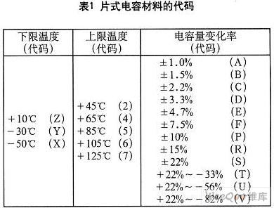 其余材料是按其工作溫度的范圍和電容量的變化率來(lái)命名的。詳見(jiàn)表1。