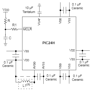 在電源線長度超過6英寸的電路板上,建議為包括MCU在內(nèi)的集成電路使用一個儲能電容來提供本地電源。應根據(jù)連接電源和設備的線路電阻以及設備在應用中的最大電流來確定儲能電容的值。