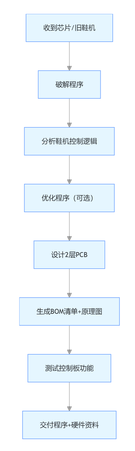 M30620FCPGP 是鞋機(jī)的 “神經(jīng)中樞”,而我們能搞定從程序到硬件的全流程問題。不管是修舊機(jī)器,還是造新設(shè)備,有解密、優(yōu)化或硬件設(shè)計(jì)需求,隨時找我們,讓鞋機(jī)生產(chǎn)更順暢!?