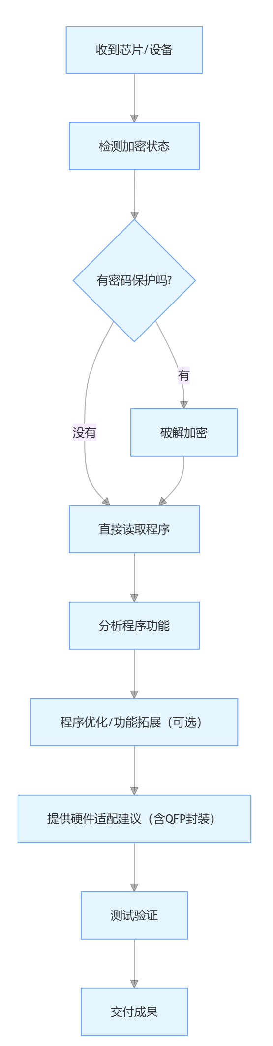 ? 全流程服務(wù):芯片解密→程序優(yōu)化→硬件設(shè)計(jì)支持(含 QFP 封裝適配)?